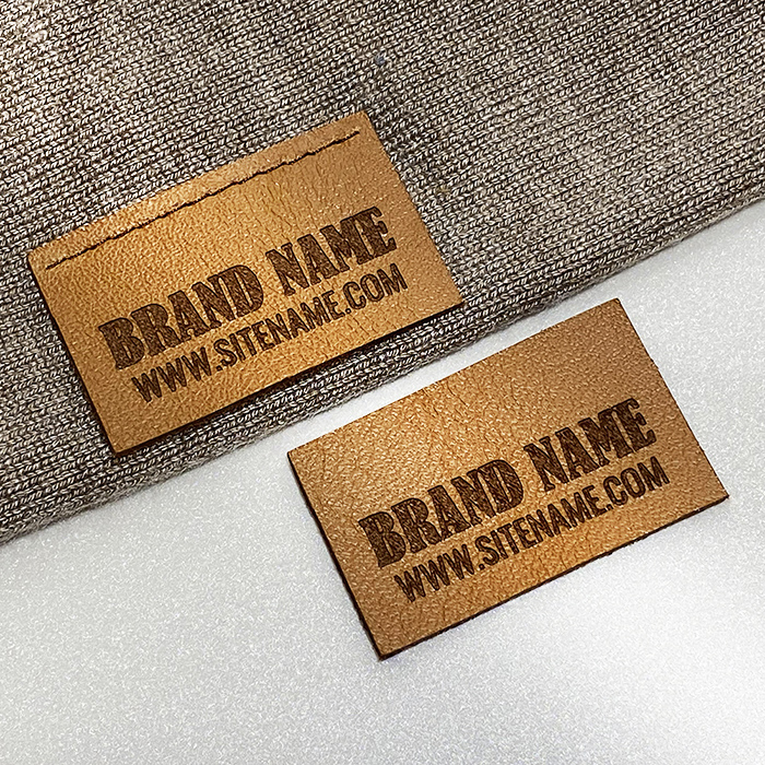 Etiqueta de cuero natural personalizada, grabada con láser y cortada según las dimensiones presentadas.