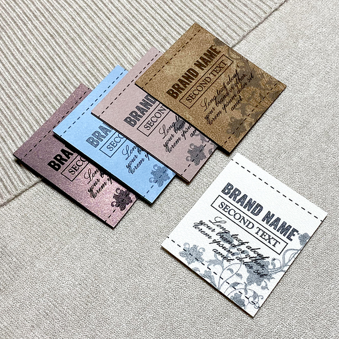 Este Etiqueta de imitación de cuero Model EP-M141 puede personalizarse en tan solo unos segundos, de manera sencilla y rápida utilizando el constructor gráfico, donde puedes elegir el color del cuero de imitación, insertar tu propio logo o cualquier otra imagen con un diseño complejo, y puedes personalizar la etiqueta con tu propio texto, por ejemplo con el nombre de tu marca, un slogan, el nombre del fabricante y el país donde se ha fabricado tu producto.