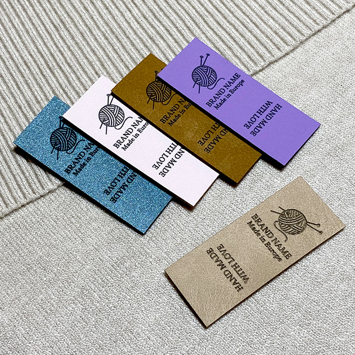 Este Etiqueta de imitación de cuero Model EP-M161 puede personalizarse en tan solo unos segundos, de manera sencilla y rápida utilizando el constructor gráfico, donde puedes elegir el color del cuero de imitación, insertar tu propio logo o cualquier otra imagen con un diseño complejo, y puedes personalizar la etiqueta con tu propio texto, por ejemplo con el nombre de tu marca, un slogan, el nombre del fabricante y el país donde se ha fabricado tu producto.
