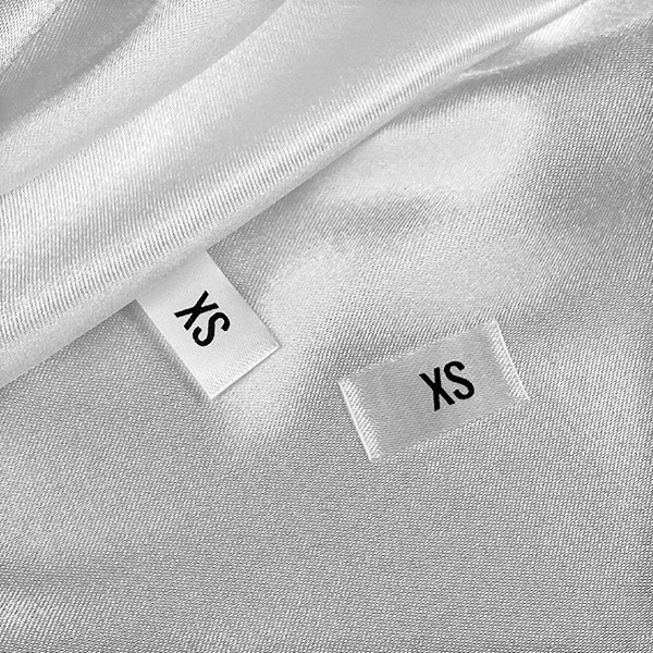 Etiquetas textiles con la talla o el número del producto al que se va a coser, de raso blanco impreso con letra negra. Este modelo de etiqueta textil se fabrica utilizando las tecnologías más avanzadas en el campo de la impresión digital en medios textiles. Las etiquetas están impresas en satén especial, por el método de transferencia térmica, con una calidad de impresión impresionante y alta resistencia al lavado.