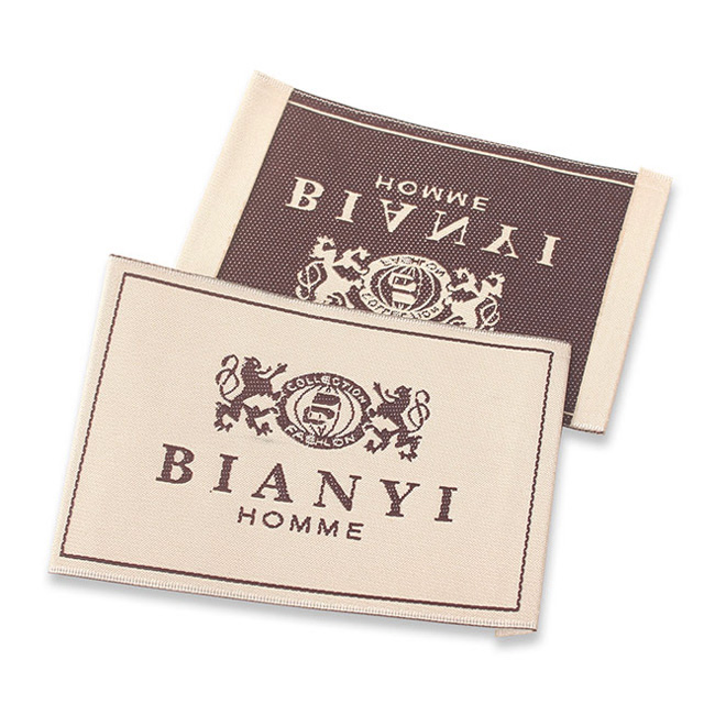Etiqueta tejida, bordada Digital en un material textil modelo Pemium Style, personalizada con el nombre de la marca y un emblema, adecuada a los productos textiles, especialemte ropa de dama, caballeros y otros artículos de vestir. Este modelo de etiqueta textil está hecho de materiales de alta calidad, utilizando las tecnologías más avanzadas en el campo del bordado digital a nivel industrial.