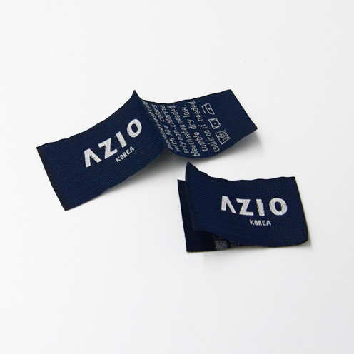 Etiqueta tejida, personalizada con el nombre de la marca y textos sobre la composición y el mantenimiento, modelo Low Style, concebida para ropa y distintos productos textiles. Este modelo de etiqueta textil está hecho de materiales de alta calidad, utilizando las tecnologías más avanzadas en el campo del bordado digital a nivel industrial.