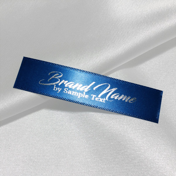 Etiqueta textil impresa con escritura plateada sobre raso modelo Fashion Style, para ropa y prendas varias. Este modelo de etiqueta textil se fabrica utilizando las tecnologías más avanzadas en el campo de la impresión digital en medios textiles. Las etiquetas están impresas en satén especial, por el método de transferencia térmica, con una calidad de impresión impresionante y alta resistencia al lavado.
